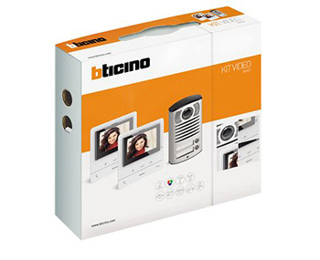 Kit video vivavoce bifamiliare composto da due videocitofoni Classe 100V16B e pulsantiera Linea 2000 con telecamera a colori e 2 pulsanti di chiamata. La pulsantiera risponde al grado di robustezza IK07 – grado di protezione IP54
